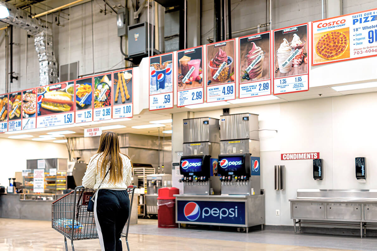 Costco and Sam’s Club feature classic food court menus with hot dogs, soda, pizza, ice cream, pretzels, smoothies, and more — but you need a membership here. The most famous item among the options is Costco’s hot dog combo, which has remained at just $1.50 despite inflation. In 2016, BJ’s discontinued its food courts and partnered with Dunkin’ (formerly Dunkin’ Donuts), so your options for shopping and dining at BJ’s locations are limited.