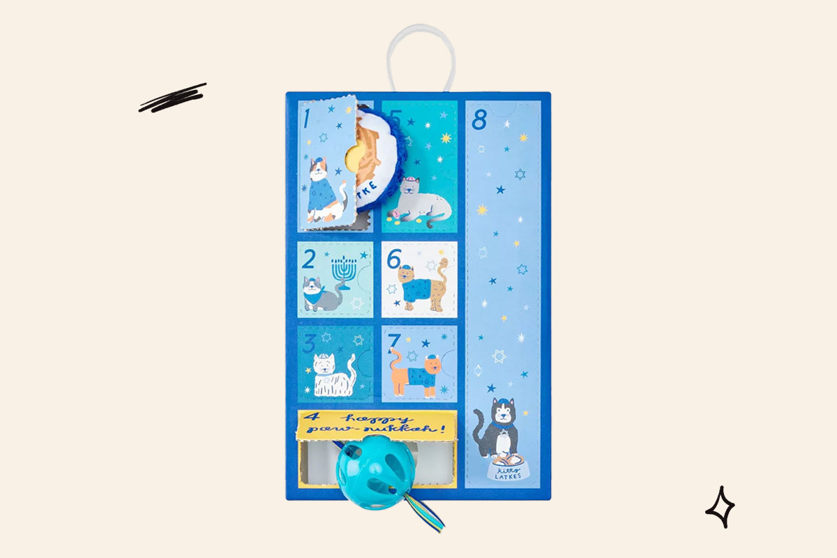 There are plenty of cute items on this list, but this Hanukkah advent calendar for cats from Boots & Barkley might just take the latke. Tiny latkes and dreidels? I’m plotzing! Show some love for your furry friend and let them join in on the holiday festivities with a little treat for each night.