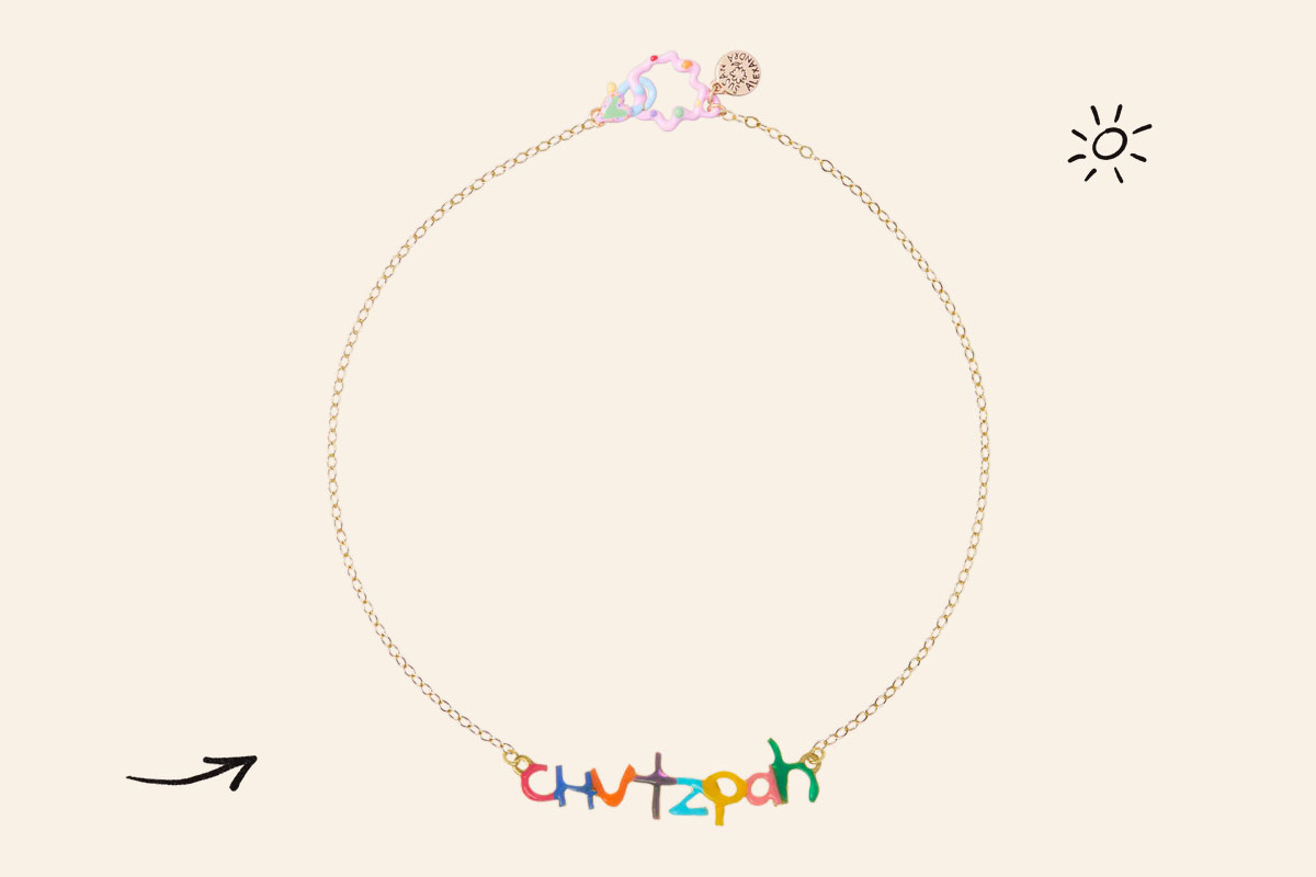 A lot of judaica jewelry can feel, well, a little stuffy and traditional. But this “Chutzpah” necklace from Susan Alexandra is a modern and edgy expression of Jewish culture. Whether it’s the freshly minted bat mitzvah girl or your cool cousin in Bushwick, this unique piece of jewelry is sure to be a hit.