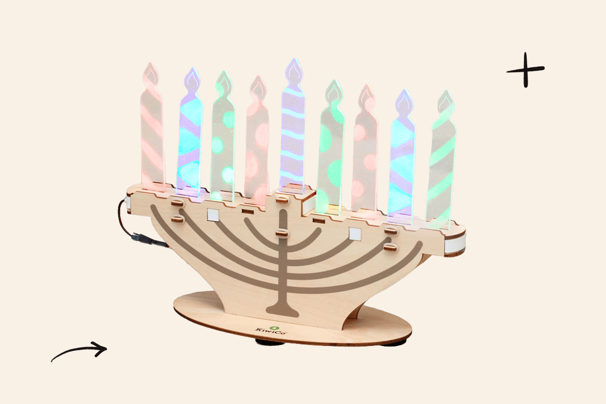 Kiwi Co. creates wonderful and inclusive STEAM activities for kids of all ages. This Light-Up Menorah brings kids into the holiday traditions in a fun, interactive, and independent way. No more fighting over who gets to light the candle when everyone has their own menorah!