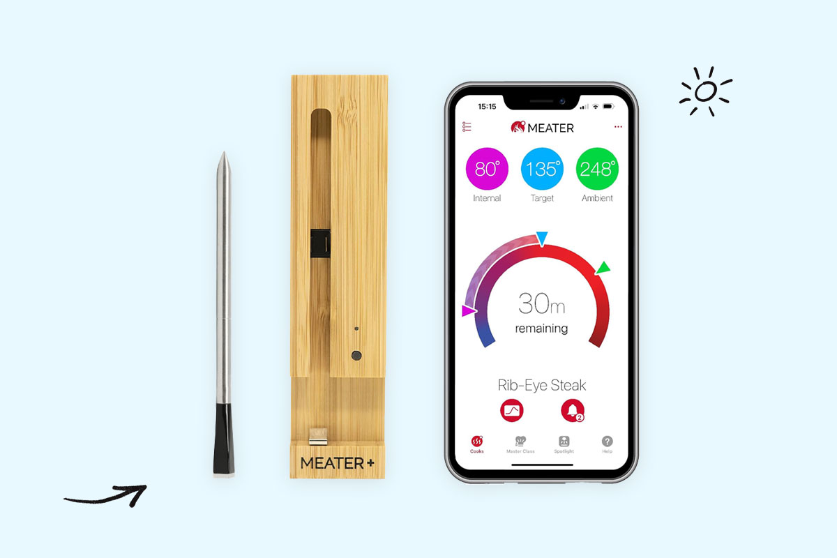 Checking to see if your steak or chicken is done is a perilous process. Wait too long, and your dinner will be drier than the Sahara, but serve too soon, and you could make your guests sick. The Meater eliminates the guessing game. The thermometer works with your smartphone to let you know precisely when to turn off the heat or remove dinner from the grill. Even better? No more metal wire dangling in your way while you cook.