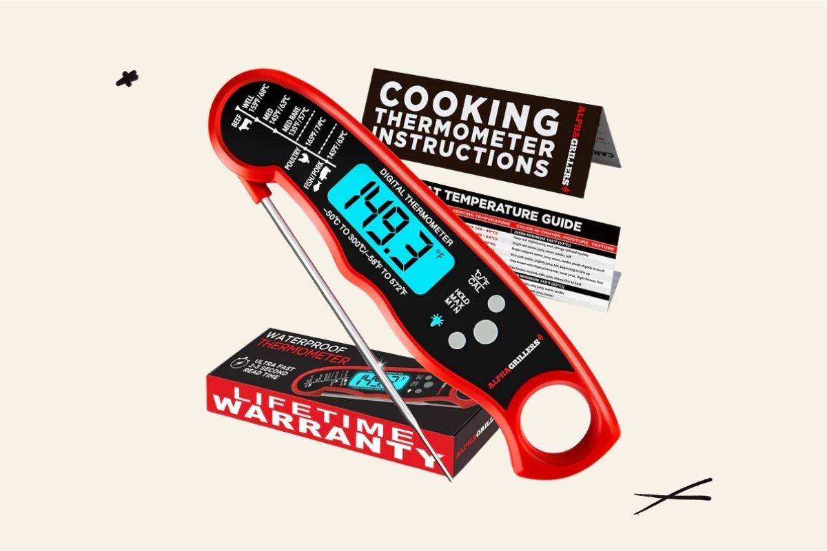This thermometer reads the temperature in seconds, so your steak hits perfect doneness every time. Plus, it’s waterproof, backlit, and built to survive grill-side spills.