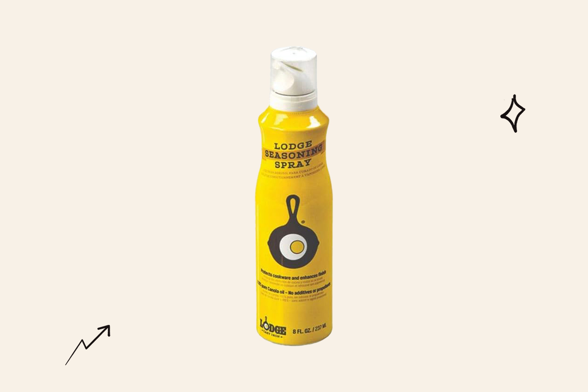 Lodge’s A-Spray Seasoning Spray is aerosolized canola oil, which makes it easy to apply an even layer. Plus, since it disperses smaller molecules, it’s easier to soak in, too.