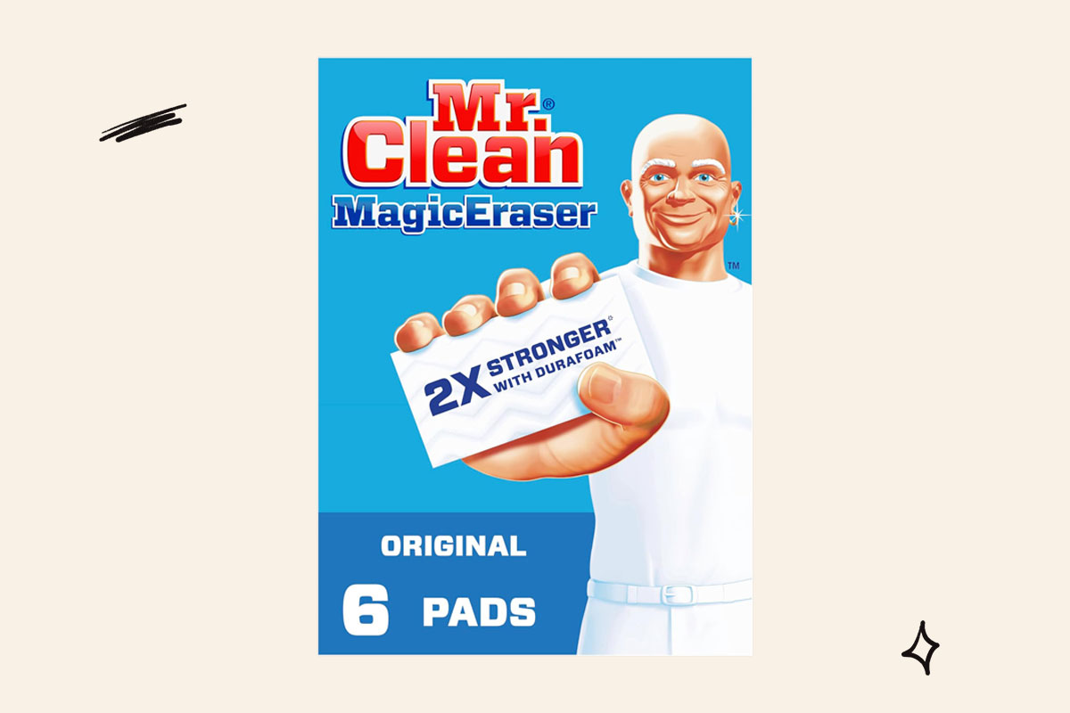 Mr. Clean Magic Erasers are an excellent multifunctional cleaning basic to have on hand, especially for stained and scuffed furniture or appliances from the thrift store. With just a little water and scrubbing, these foam blocks can erase marks and stains on items from patio furniture to grill grates.