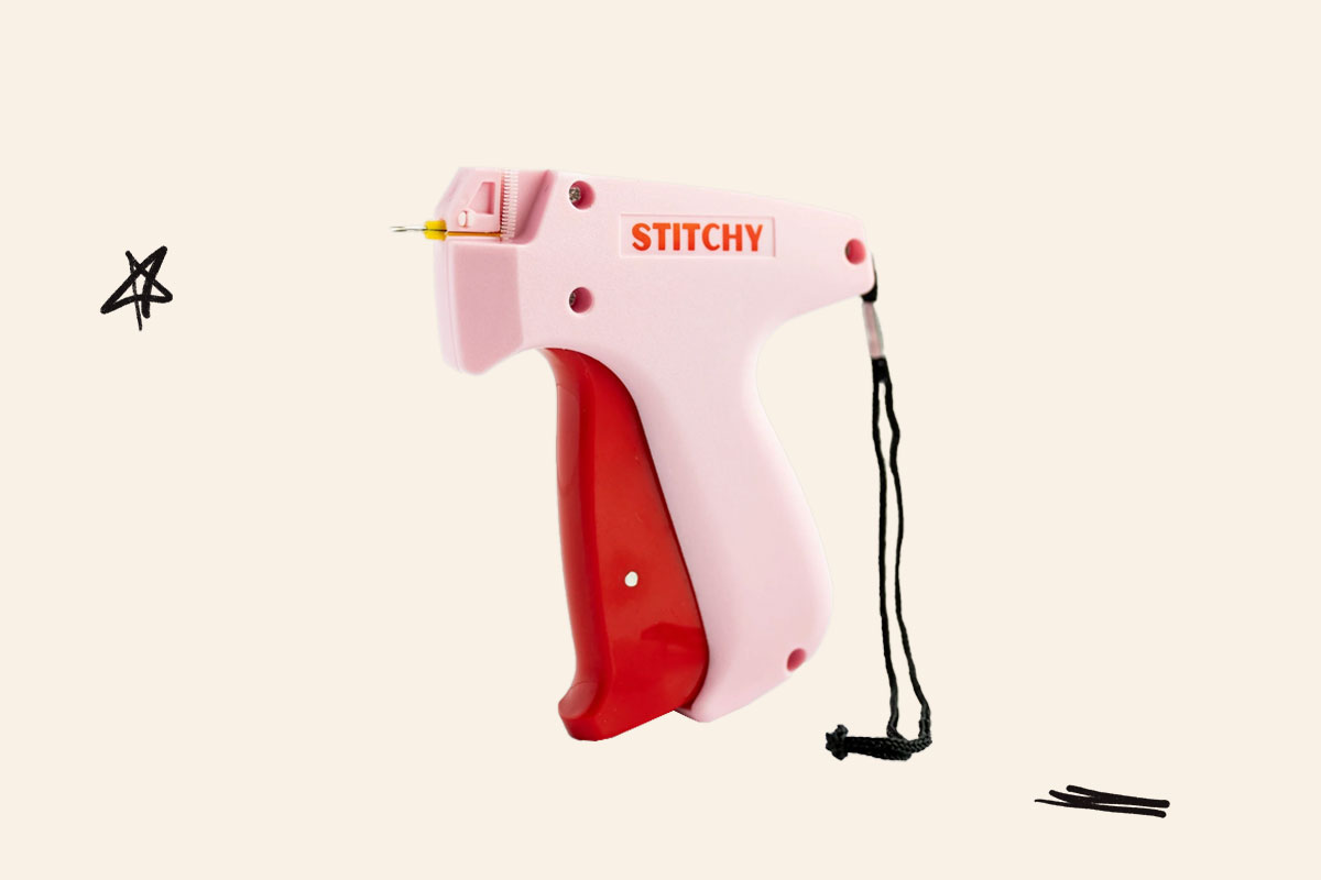 When shopping for secondhand clothes, you don’t always have your first choice of fit or style. But the Stitchy, an innovative stitching tool, allows you to temporarily alter clothing, whether hemming, mending, or styling, without the need for a sewing machine. It looks like a glue gun, but instead, it dispenses single stitches with a click of a button to keep collars in place or hide gaps between buttons.
