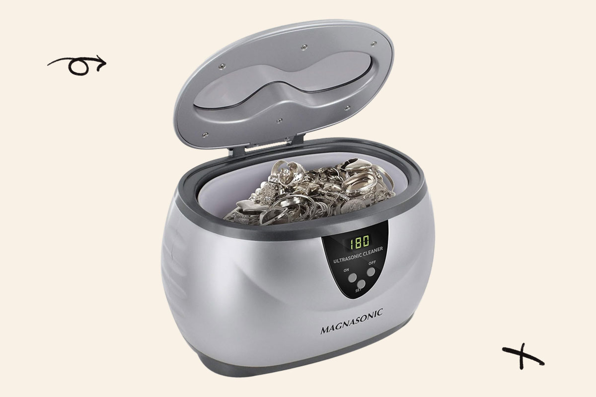 Sometimes you strike gold when shopping for secondhand jewelry, but you need to thoroughly clean and polish pieces to restore them to their shiny original state. Instead of doing this by hand or with harsh chemicals, this ultrasonic jewelry cleaner does the work for you using ultrasonic sound waves and can even clean non-jewelry items like eyeglasses or small tools.