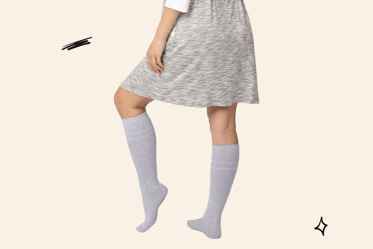 You might think swollen ankles are a given in late pregnancy, but you’d be wrong! A good pair of compression socks help soothe swelling and boost circulation, keeping your feet and legs more comfy right up until birth. They are also key to wear if you travel during pregnancy, especially on a long flight to reduce the risk of blood clots from long periods of sitting.