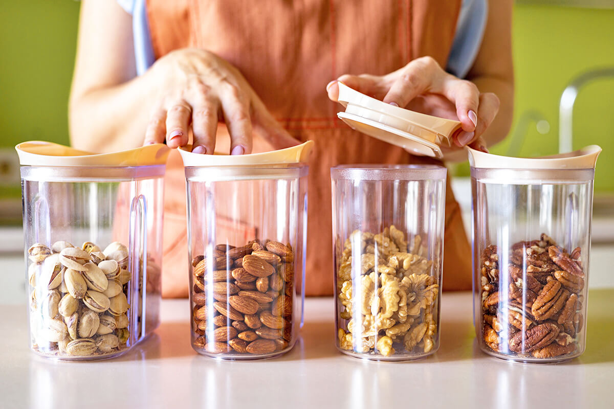 Nuts are relatively shelf-stable, so most people toss them in the pantry. However, the unsaturated fats that make them a healthy snack choice can actually be their long-term storage downfall. When exposed to warm temperatures and light, unsaturated fats in nuts begin to break down, slowly turning your entire stash of cashews or almonds rancid. Storing nuts in a closed container in the fridge slows this process, and keeps them fresh for up to six months.