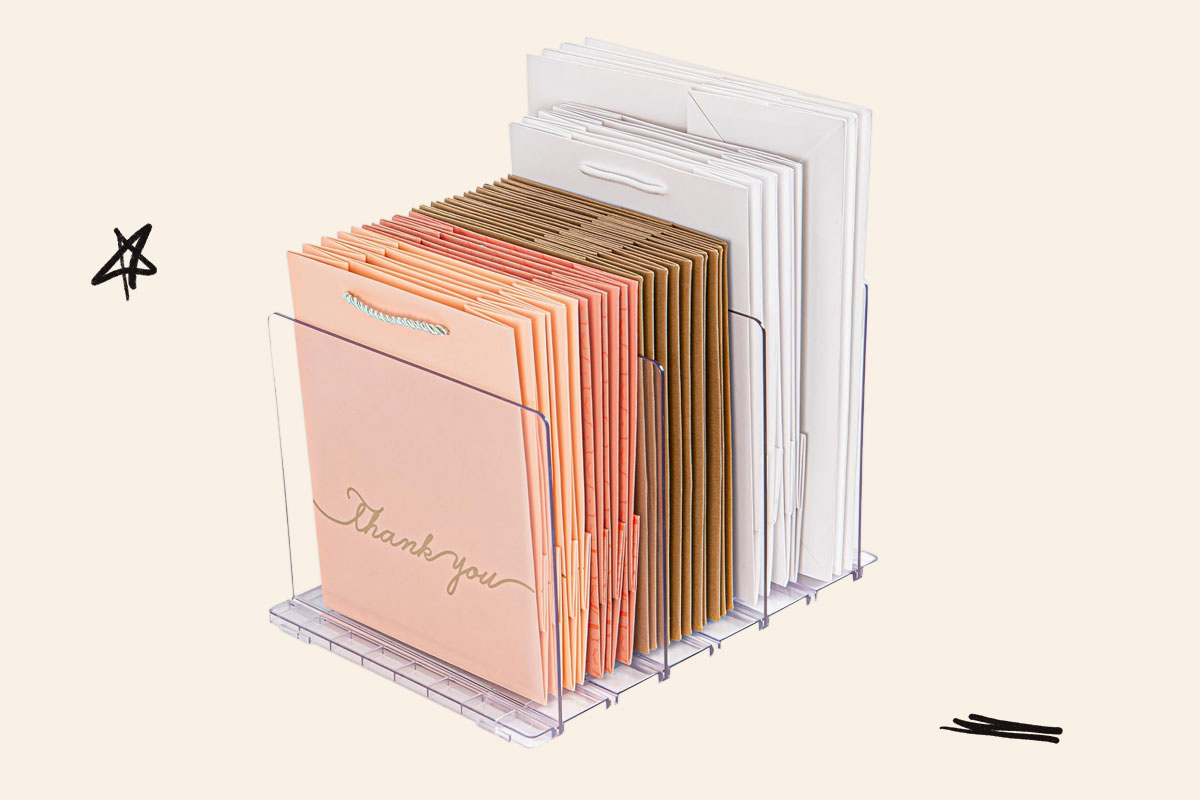 These dividers are the perfect spot to store gift bags of varying heights and widths while still easily seeing what you have on hand. If you need more room, just connect several units together.
