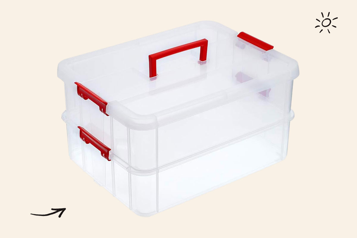 Keep bows, tags, and other delicate items from being crushed or lost with these sturdy, transparent storage boxes. They come in sets of two and are stackable, so you can clip them together or store them side-by-side.