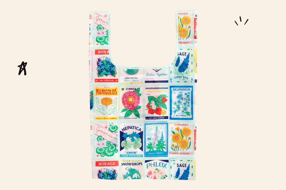 New parents need a diaper bag or backpack with all the supplies necessary for changing a baby on the go. But a separate tote bag is useful for things like groceries, library books, baby toys, or a variety of other items. This nylon tote has cheerful illustrations of flowers from vintage seed packets. It’s lightweight and folds down into a small pouch when it’s not being used. You could make this an extra-special gift for a new mom by filling the tote with books, beauty products, or other pampering items.