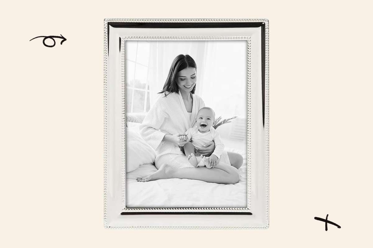 Framed photos make touching gifts. This classic frame has a silver finish, and photos can be displayed in portrait or landscape orientation. A pretty frame might be a nice gift by itself, but we think it’s best to present it with a family picture already inside. The act of choosing and printing a photo for a busy new mom is really the best part.