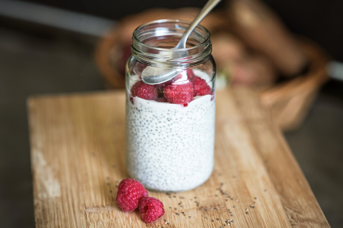 Mix four tablespoons of white or black chia seeds with a cup of almond or coconut milk. Then add maple syrup, vanilla extract, or another sweetener. Let the mixture sit for five minutes, and then stir one final time to break up any clumps of chia seeds, before letting the bowl sit in the fridge for an hour or two. This is great to do right before you start cooking dinner, as it’ll be ready after you finish your entree. Finally, remove the pudding and enjoy it as a post-dinner delight.