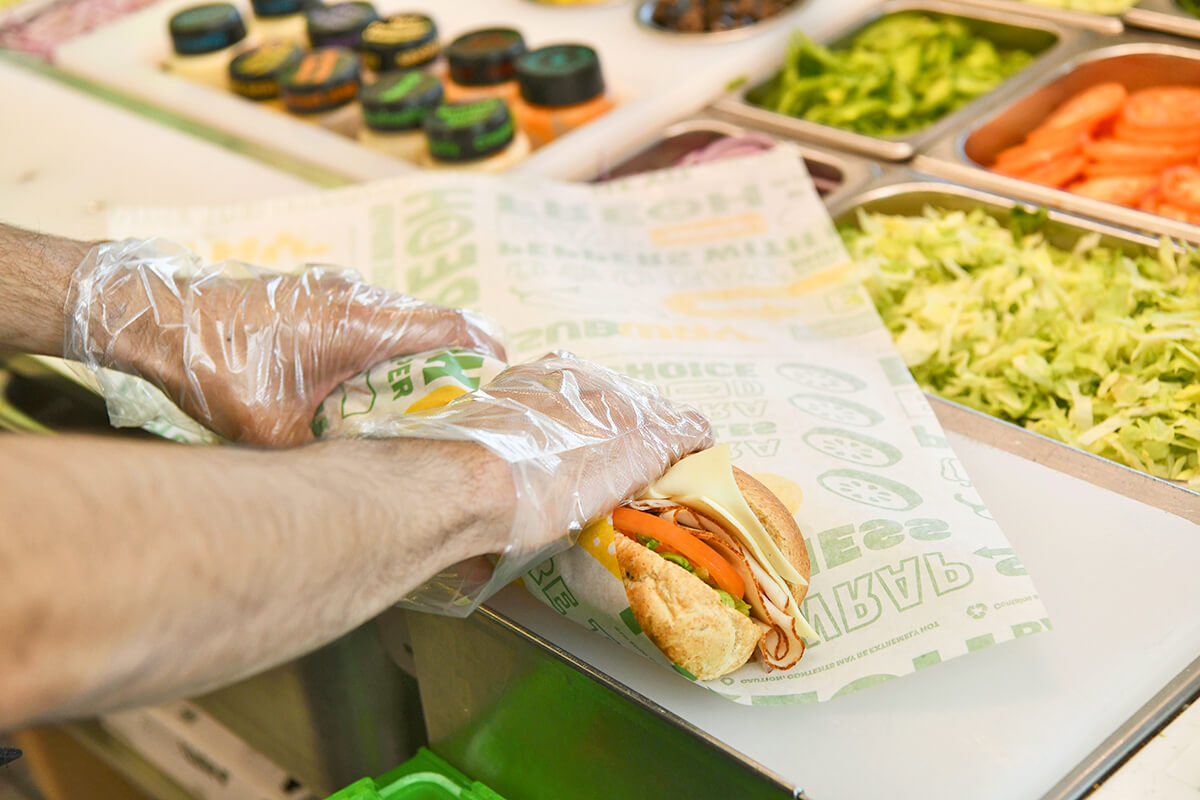 Designed for kids but ideal for anyone seeking a lighter option, the Turkey Breast Mini sandwich features lean turkey breast piled on freshly baked bread, which you can top with an array of vegetables and condiments (noting that cream-based dressings tend to be higher in calories). This mini sandwich is low in calories and fat while providing a good source of protein.