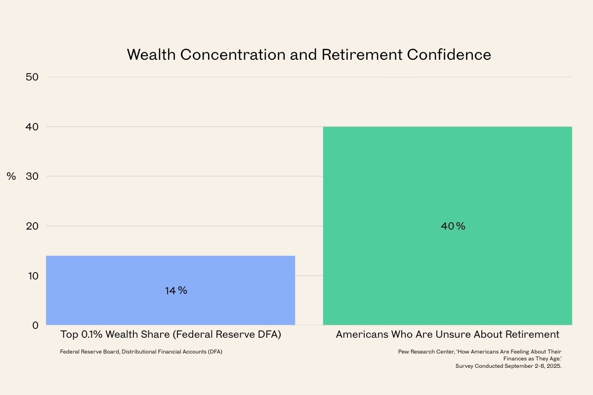 Even with planning tools available, many Americans are unsure how far their savings will stretch. A Pew Research Center survey found that roughly four in 10 Americans don’t feel confident they will have enough money to last their entire retirement. That uncertainty stands in contrast to the longer-range planning affluent households do. Though an early start lets you take advantage of compound interest, planning at any stage makes retirement feel more attainable. The gap between where wealth is concentrated and how people feel about their own retirement shows how much planning shapes the experience.
