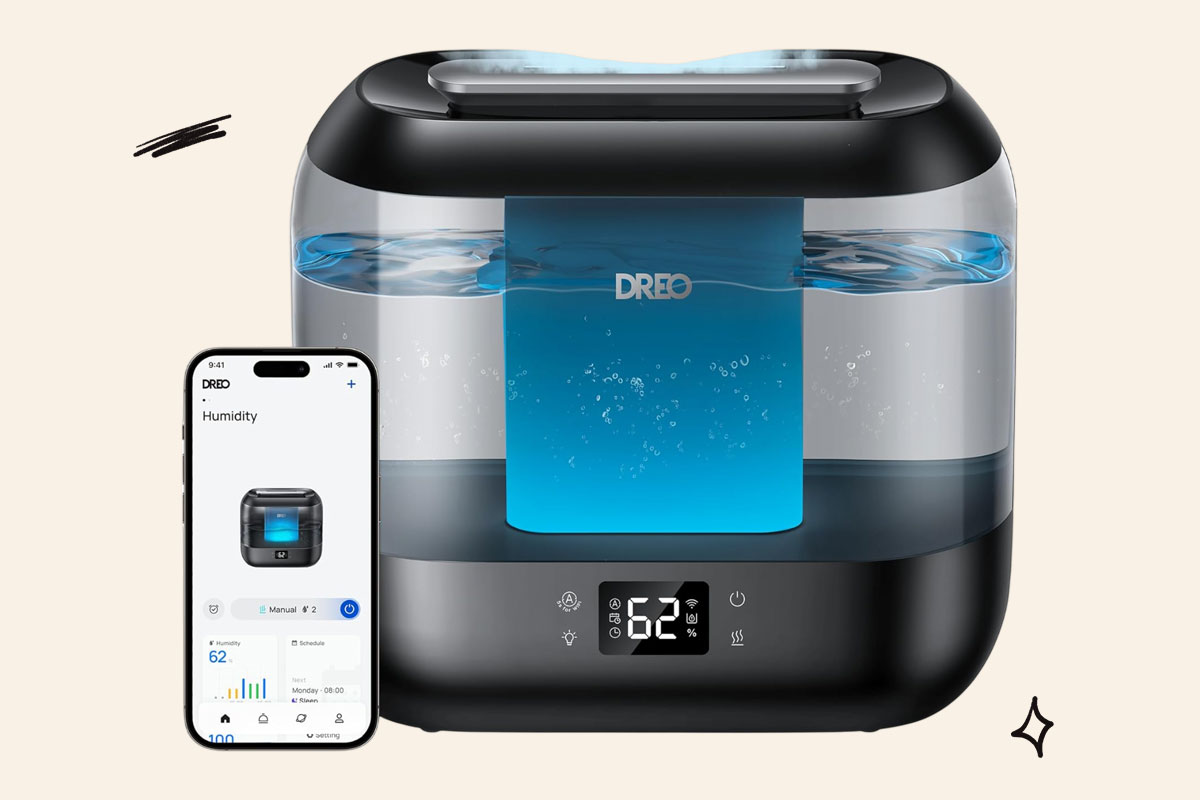 The Dreo HM311S Smart Ultrasonic Humidifier is one of our favorite humidifiers, thanks to its smart features and budget-friendly price. It creates a soothing, comfortable environment with a cool mist that can run for up to 32 hours and is easy to clean. Use the app to adjust mist settings, set timers, and create schedules — which is perfect for running while you’re asleep and setting a timer or schedule to turn off when you wake up (even better if you time it with your sunrise alarm).