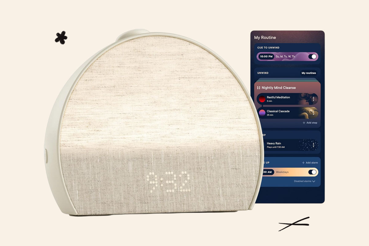 If you want a bedside light that does everything, get the Hatch Restore 3. It has a sleep-friendly sunset simulator or any colored light setting you might prefer, and cozy sounds to listen to as you drift off. Plus a sunrise alarm with gentle sounds like forest birds greet you as the day breaks. If you subscribe to Hatch’s monthly membership, it unlocks more features like sleep meditations.