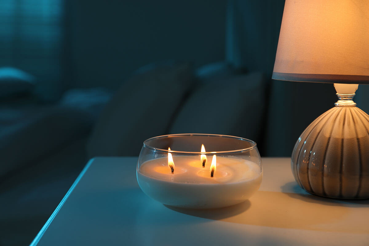 It’s important to cultivate a relaxing environment in your sleep space. This begins with replacing any harsh, bright lighting with duller, calming tones. This can be achieved by softer mood light bulbs. Blackout shades are also an excellent option if you go to sleep before sunset or live in a brightly lit city.