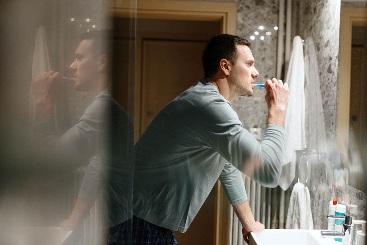 It’s imperative that you brush your teeth twice daily for two minutes — once after you wake up and again right before bed. Think of all the food you eat throughout the day and how little morsels get caught between the teeth. If you go to bed without brushing, that food will sit there overnight. Yuck! So brush your teeth before bed, or else you may be making a lot of visits to the dentist in the near future.