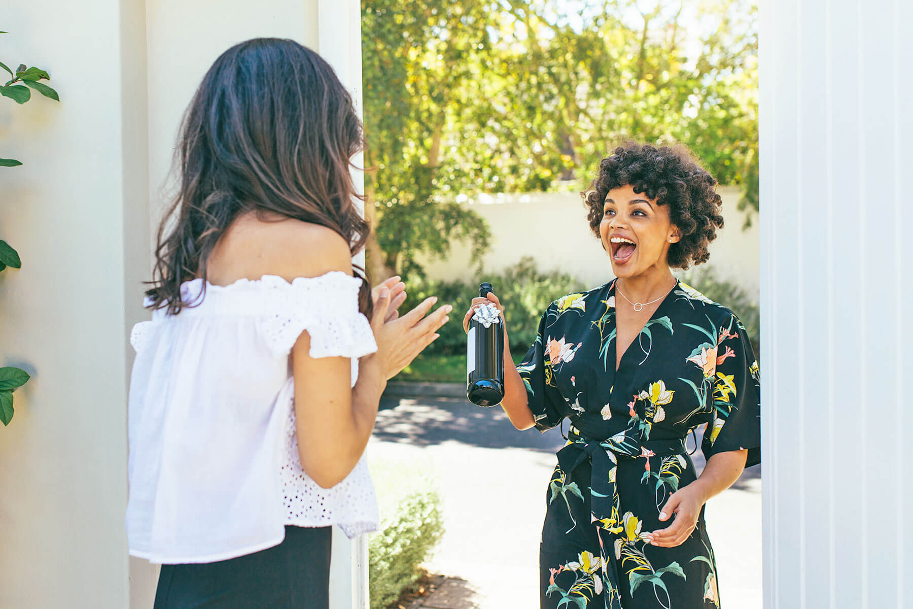 Anytime someone invites you to their home, you should have a gift for the host. It shows appreciation for the cooking, cleaning, decorating, and planning that the host gladly made time for. The gift depends on the occasion, but it doesn’t have to be fancy or expensive. It can be a bouquet, a bottle of wine, or a batch of homemade cookies. Even a personalized “thank you” card goes a long way. However, don’t bring food to be served during the meal unless you’re explicitly asked to.