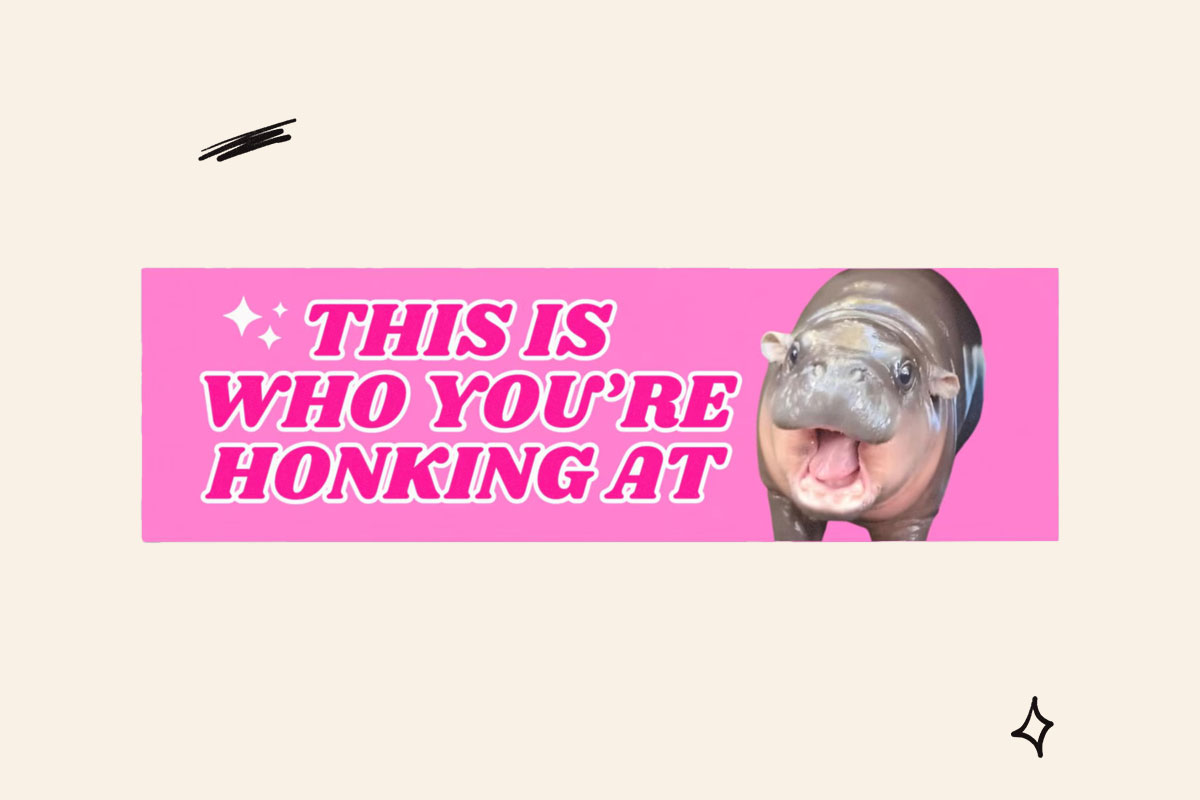 We honestly hadn’t given hippos much thought until an adorable one named Moo Deng entered the scene, and now we’re downright obsessed. This sassy, sneaky ball of blubber went viral on social media this fall, quickly becoming this year’s icon, and we’ve been watching her unpredictable-but-always-adorable antics ever since. Whether she’s biting zoo staff or lazing about, this pygmy hippo draws record crowds at her home in Thailand, but you don’t have to hop on a plane and travel across the world to capture that sassy spirit that is Moo Deng (her name translates to bouncy pork). Indeed, there’s plenty of Moo Deng-inspired merch out already, including holiday ornaments and tees, but it’s this lighthearted, laugh-inducing bumper sticker that we can’t wait to give as a gift this holiday season. Road rage is gone when Moo Deng’s face is staring back at you, reminding you to chill and channel your inner bouncy pork.