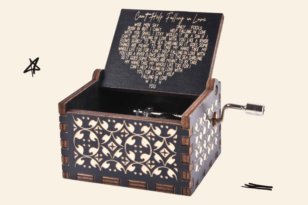 If your partner’s partial to a love song, this music box is the ultimate Valentine’s Day gift for them. Wind it up and sit back while it gently chimes the tune to the King of Rock’s “Can’t Help Falling in Love.” Presented in an antique-style box, this musical gift is sure to bring a tear (or two) to your other half’s eye. It’s even got the lyrics on the inside lid, so you could let out your inner songbird and serenade them if you’re feeling brave.