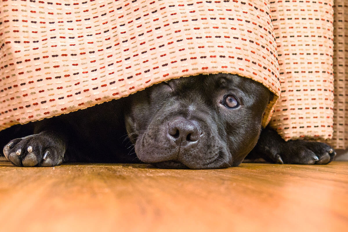 Some pets start running around in a frenzied panic, and others may hide in a safe space behind a couch or under the covers. Others may whine, pace, pant, and make various other stress signals, such as digging up the yard. All of these are common responses to an impending storm, and they vary case by case. The good news is there are ways to help your pet relax during these tense moments.